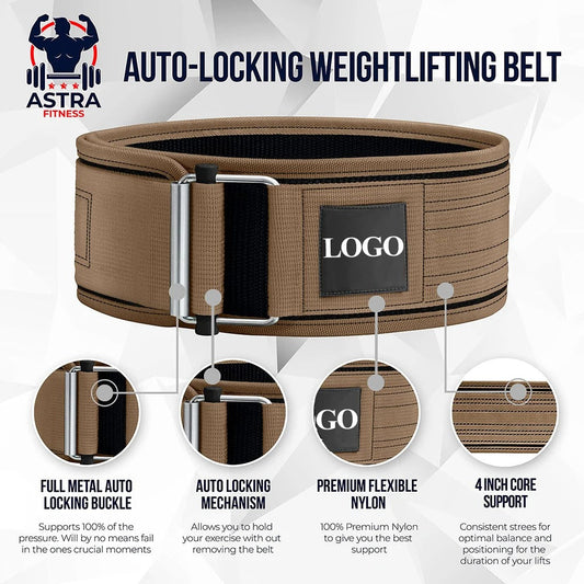Quick Locking Weightlifting Belt Adjustable Nylon Gym Workout Belts for Men and Women Deadlifting Squatting Lifting Back Support